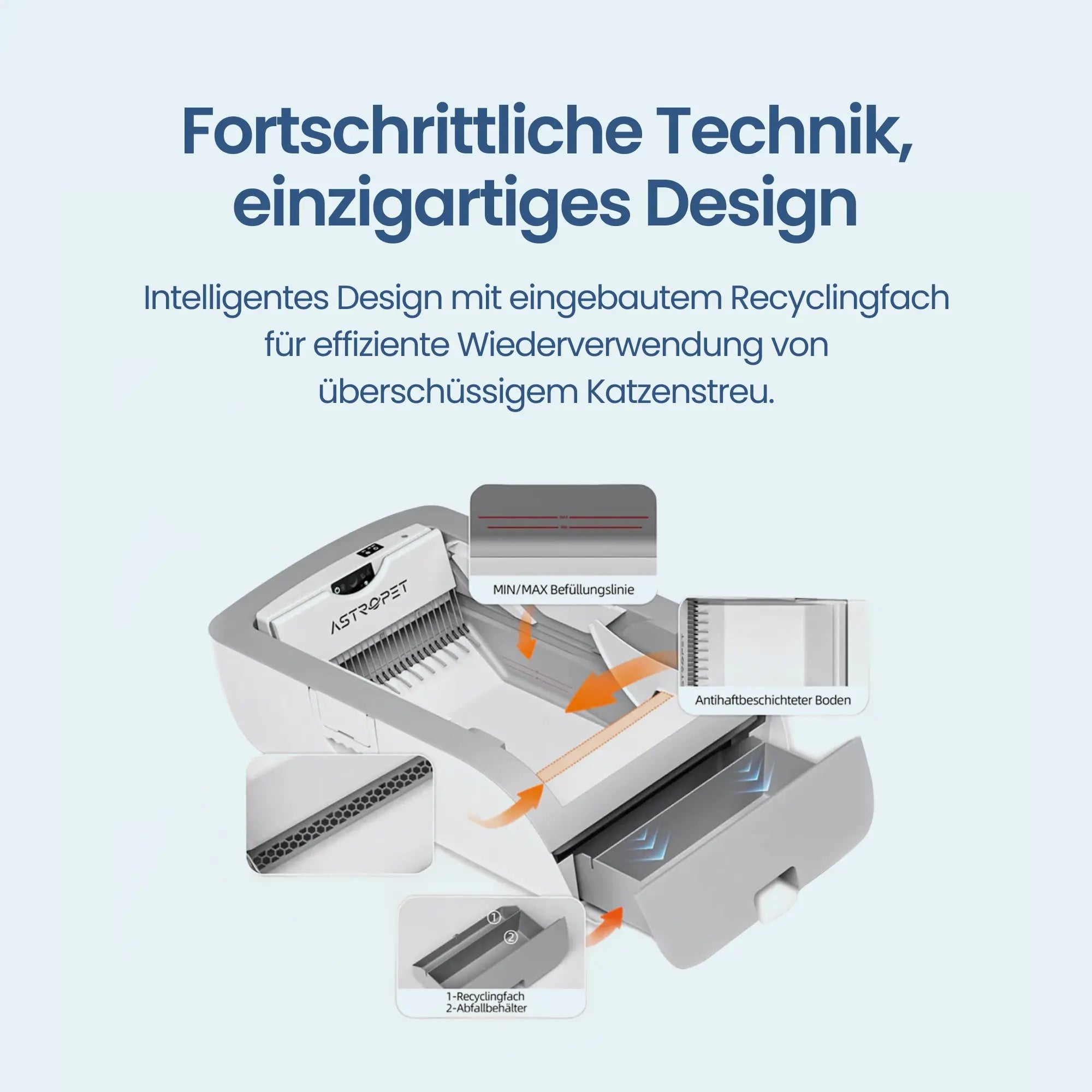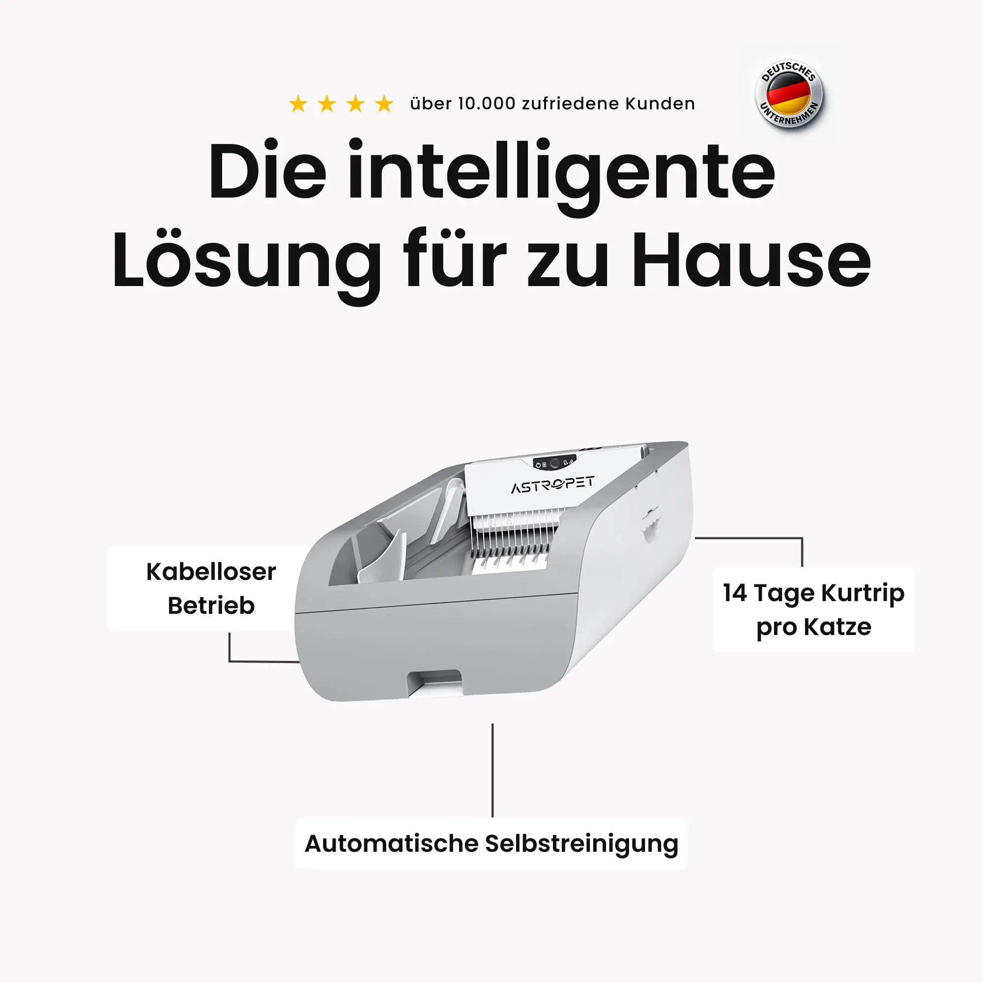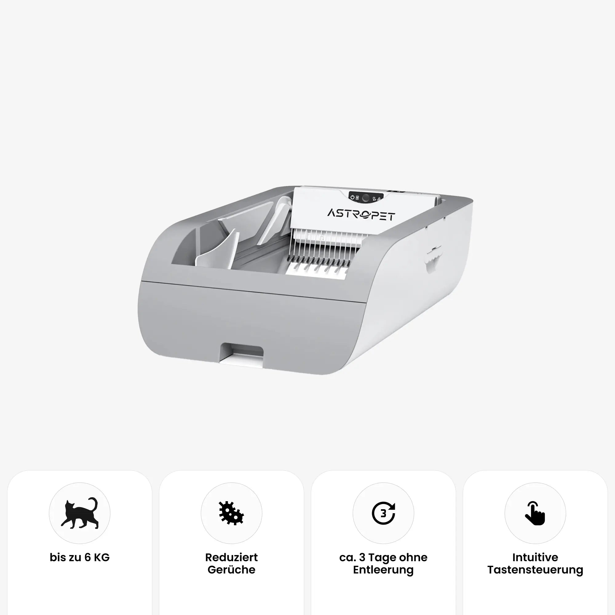 Die hochmoderne Lösung für größere Katzen, speziell für Besitzer, die Wert auf Hygiene, Komfort und fortschrittliche Technologie legen - mit App-Steuerung, selbstreinigend nach jeder Nutzung und perfekt für Mehrkatzenhaushalte.