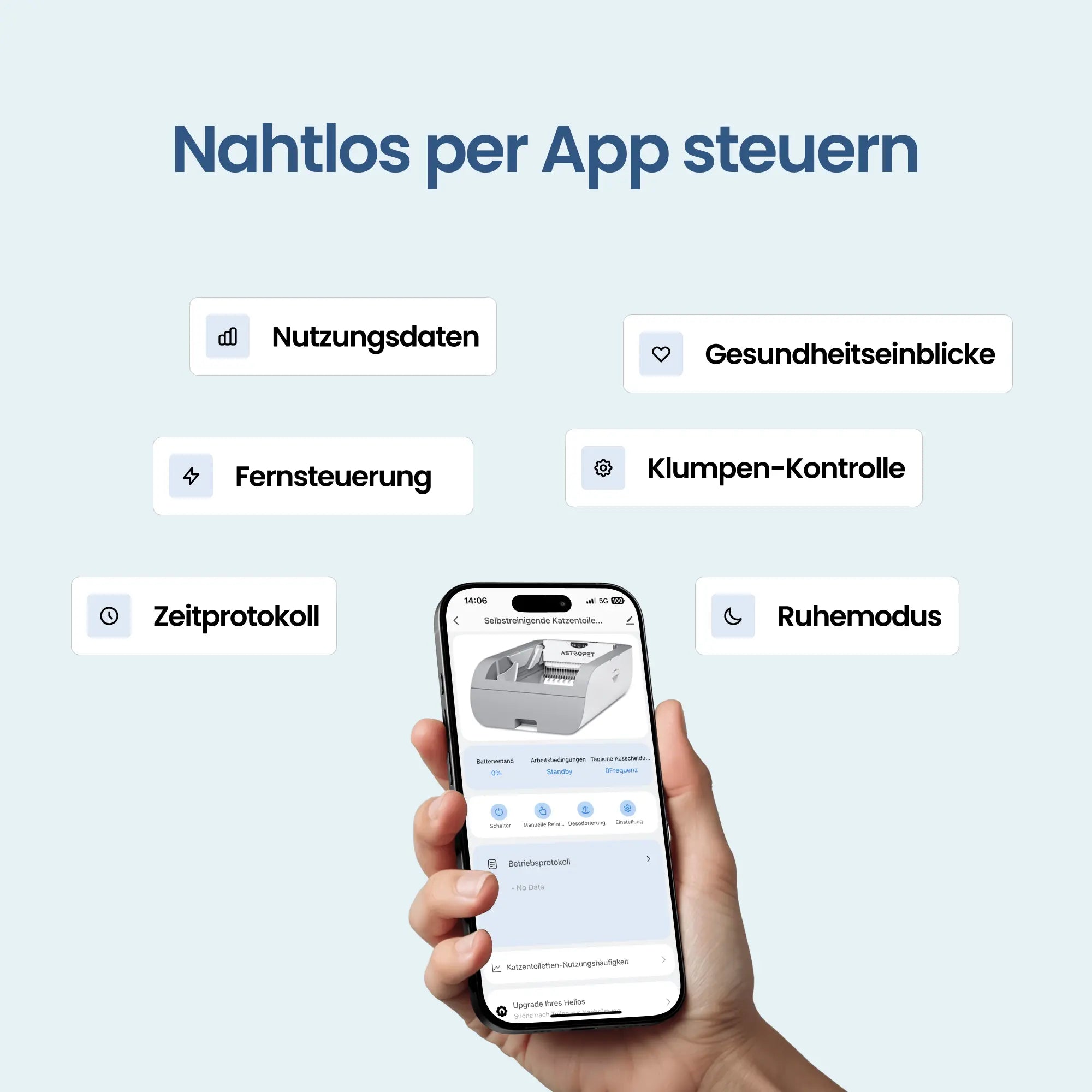 Lade die AstroPet App herunter und überwache und steuere deine Smarte Katzentoilette bequem von überall.
