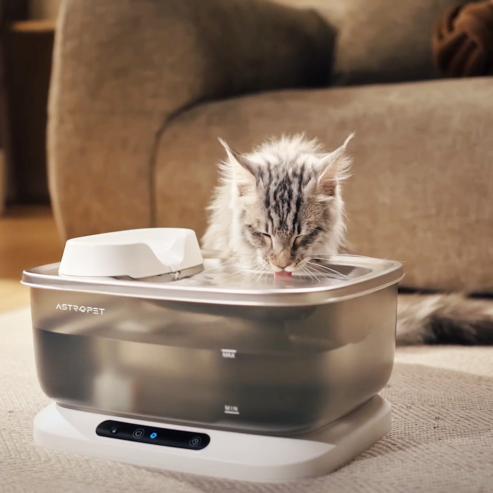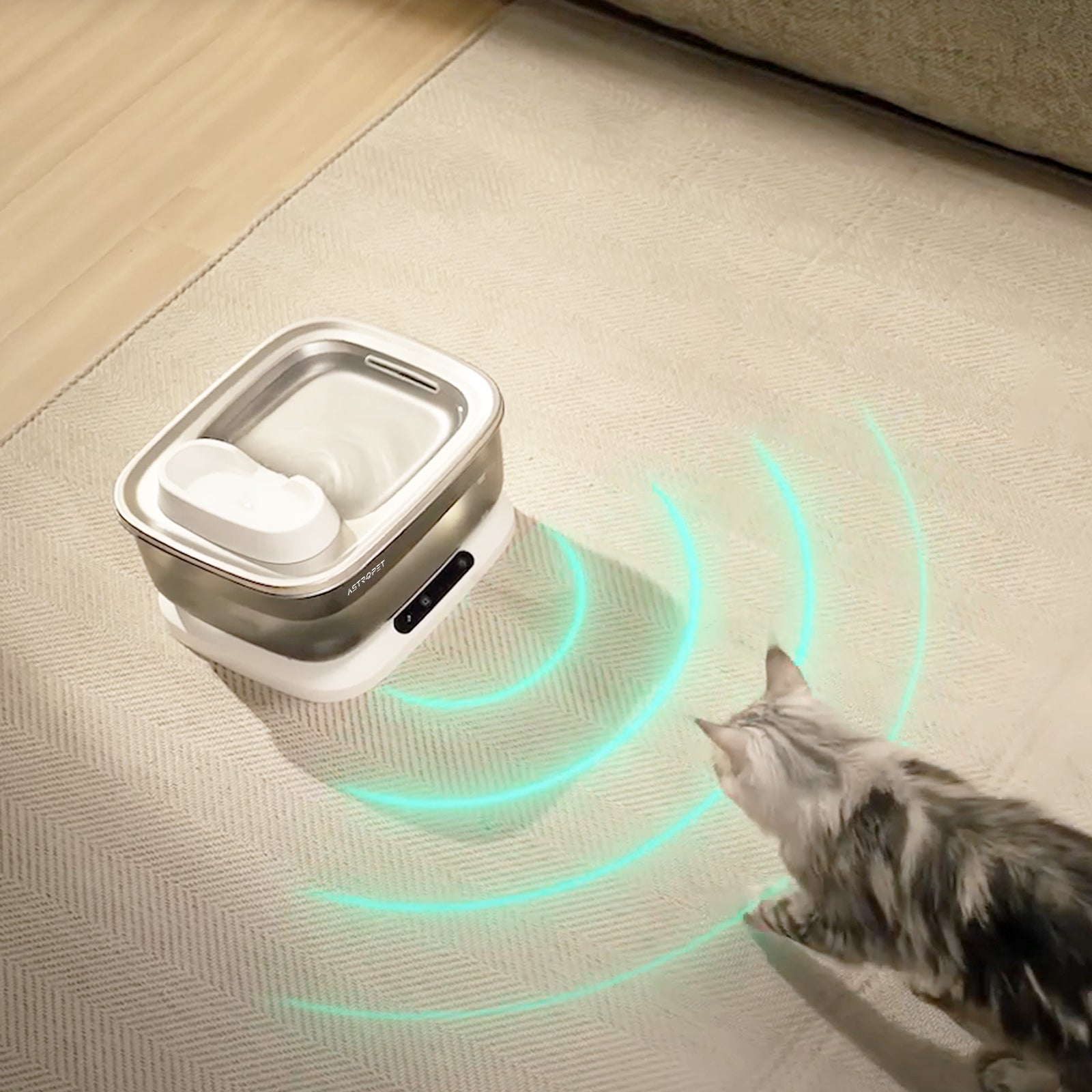 Die AstroPet Poseidon Series ist ein kabelloser Trinkbrunnen mit 7 Litern Volumen, ideal für große Hunde und Mehrtierhaushalte. Mit Infrarotsensor für energieeffizienten Wasserfluss, bis zu 40 Tage Laufzeit ohne Nachladen.