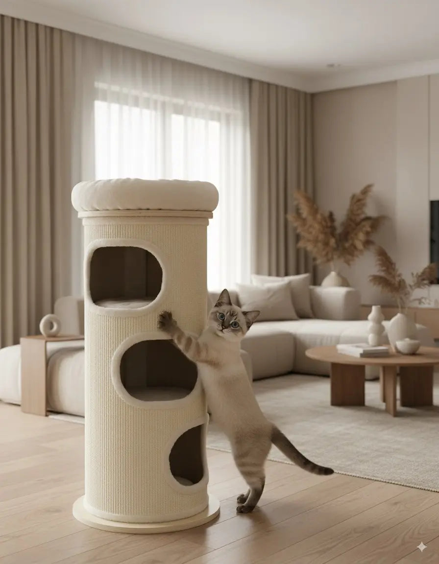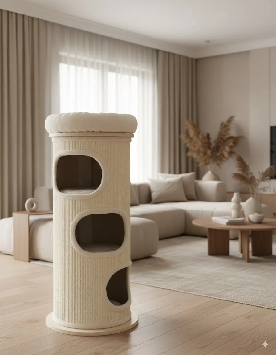 Die stabile Rundkonstruktion mit rutschfester Bodenplatte und komplett mit strapazierfähigem Sisal umwickelter Außenfläche hält selbst wildem Spiel stand. Langlebig, platzsparend und ideal für tägliche Krallenpflege, während deine Möbel geschützt bleiben.
