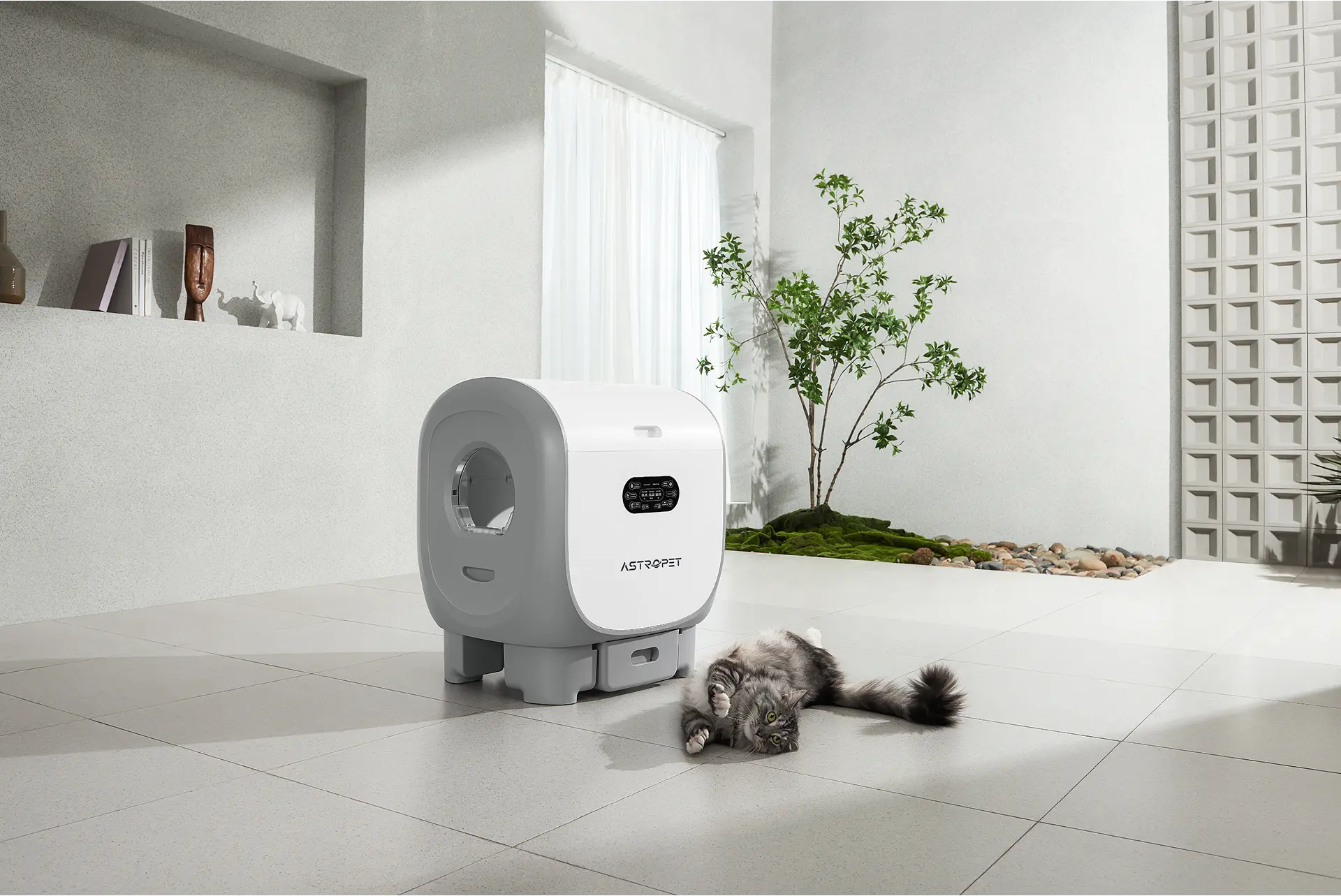 Die 101-Liter Trommel im Inneren wurde so konzipiert, dass auch Katzen mit einem Gewicht von bis zu 12,5 kg bequem Platz finden. Katzen können sich darin problemlos umdrehen, und der größere Raum ermöglicht die Verwendung von mehr Katzenstreu, um eine gründliche Reinigung zu gewährleisten.